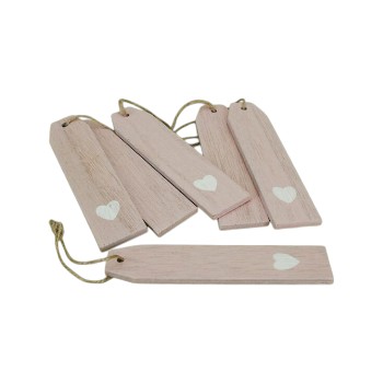 Do cedulka srdce dřevo 12x2,8cm/6ks růžová