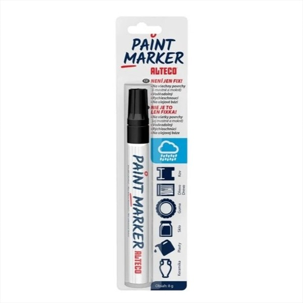 Voděodolný, rychleschnoucí, neprůsvitný, odolný fix na olejové bázi. Slouží pro popis keramiky, skla, papíru, gumy, plastu, dřeva, oceli a jiných materiálů. Vhodné pro použití v interieru i exterieru - pro floristy hlavně na nápisy na stuhy.