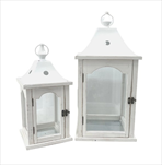 Lucerna dřevo/kov bílá 19x19/40,5cm-26x26/54cm S/2