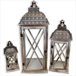 Lucerna dřevo/sklo 3ks V81cm krém patina