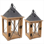 Lucerna kov/dřevo 21x21x73cm