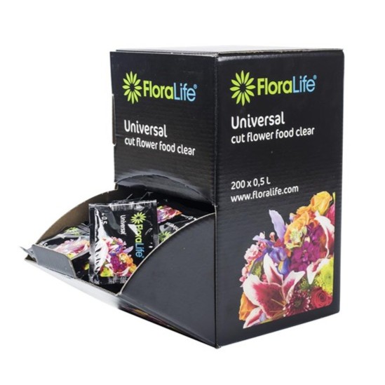 Přípravek zajistí plný rozkvět, dodá živiny a udrží čistou vodu ve vázách. Saček 5 gramů je určen pro vázy o objemu cca 0,5 litru. Box je vhodný na prodejní pulty.