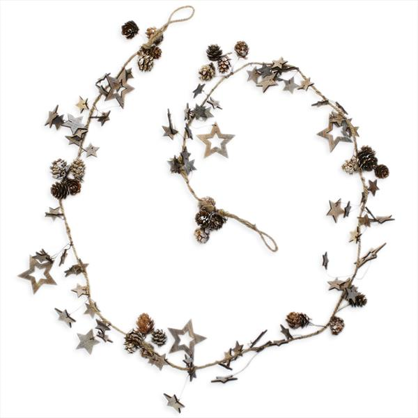 Girlanda dřevo šišky/hvězdy 150cm natural