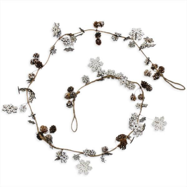 Girlanda dřevo/šišky/vločky 150cm bílá