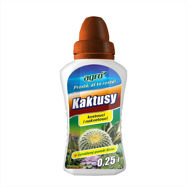 • Popis:Agro kapalné hnojivo na kaktusy je ideálním přípravkem pro přihnojování kaktusů a ostatních suchomilných rostlin (kaktusy, aloe, agáve, opuncie, trnové koruny atd.). Optimální poměr živin podporuje zdravý vývoj rostlin a zároveň přispívá k bohatému nasazení poupat a k tvorbě listové zeleně. Toto jedinečné kapalné hnojivo má zvýšený obsah fosforu pro bohaté kvetení a nízký obsah dusíku pro minimální růst.