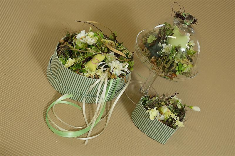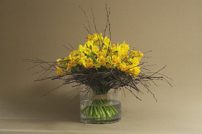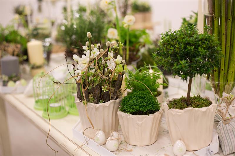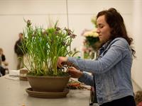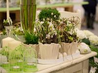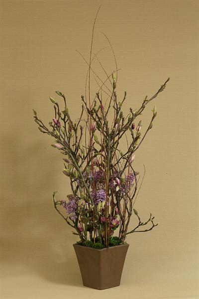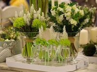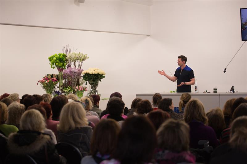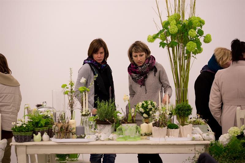 jarní inspirace. Michal Haut se snažil představit celkový koncept vystavování zboží v obchodě a vytvořil tématické celky, kam postupně doplňoval své práce. Během semináře byly představeny řezané květiny, které patří k jaru a ne vždy jsou tolik vidět v květinářstvích. Jedná se například o řezané Muscari, Hyacinthus, Magnolia, Cornus, Prunus, Viburnum, Syringa, Ranunculus Cloney.