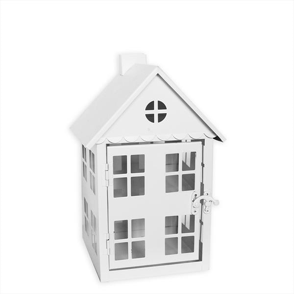 Lucerna domek kov 16x25cm bílá - velkoobchod, dovoz květin, řezané květiny Brno
