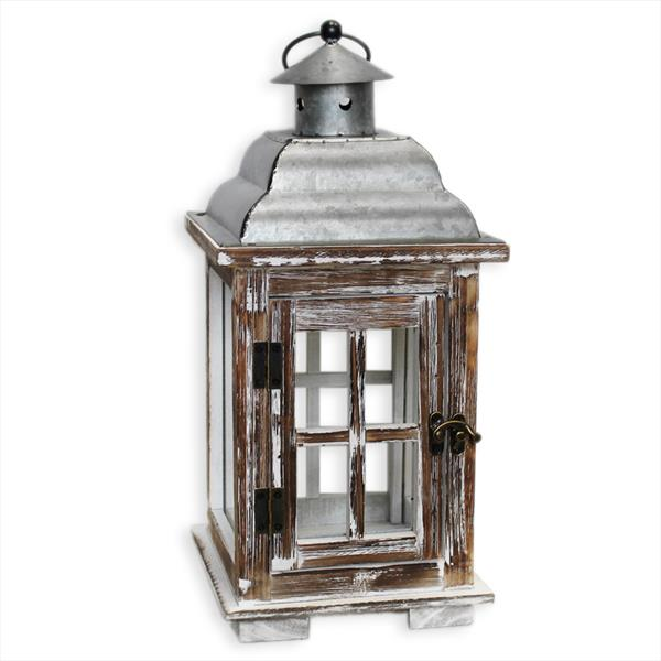 Lucerna dřevo/sklo V37,5cm hnědá patina - velkoobchod, dovoz květin, řezané květiny Brno