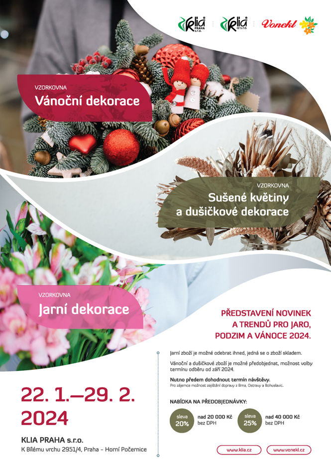 • Vánoční a dušičkové zboží je možné předobjednat, možnost volby termínu odběru od září 2024.