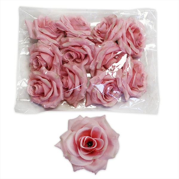 Růže hlava polyester 12ks/8cm růžová