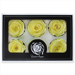 Stabilizovaná růže hlava 6ks/6,5cm sv.žlutá