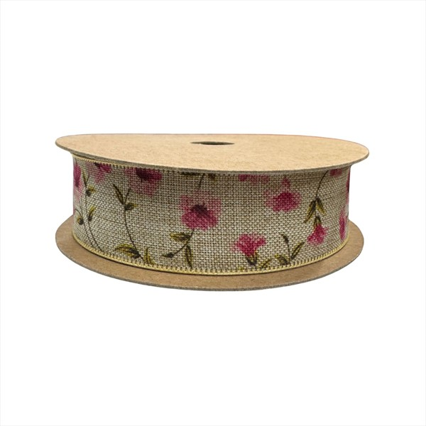 Stuha Florina 25 mm/15 m natur/růžová