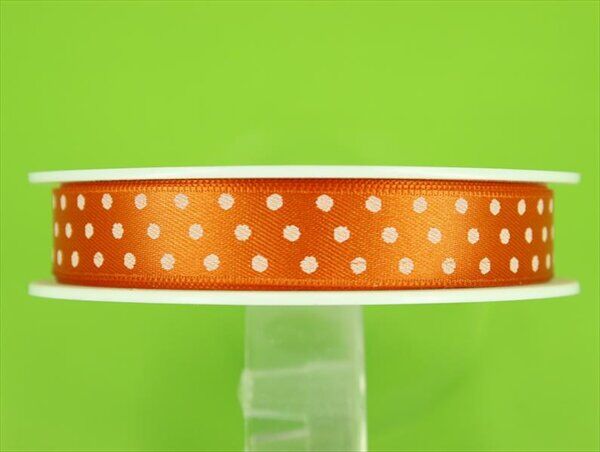 Stuha satén puntík 15 mm/20 m oranžová